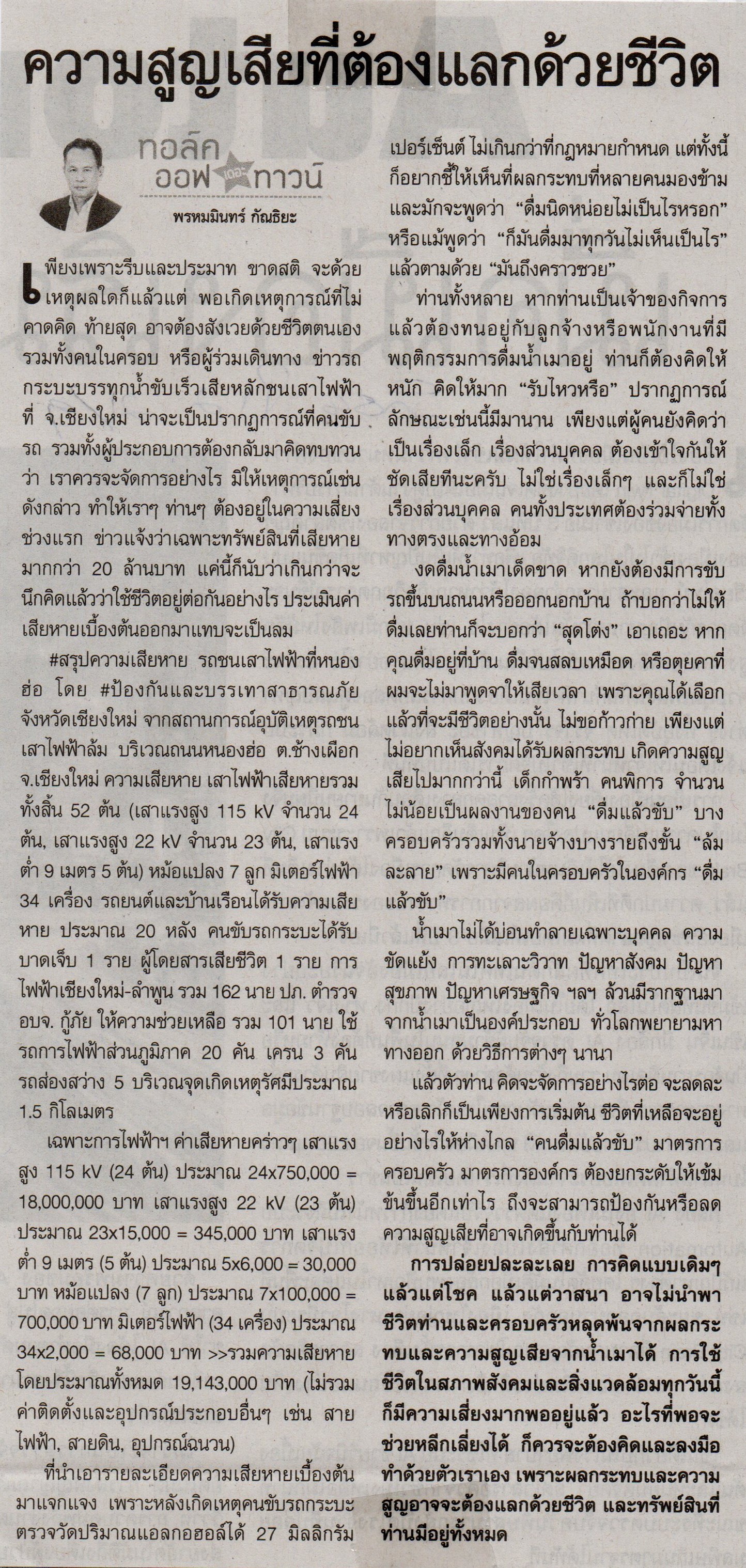 ความสูญเสียที่ต้องแลกด้วยชีวิต (มติชน น12)