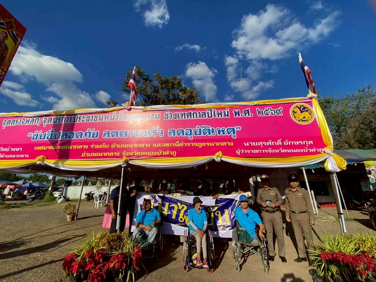 เมื่อวันที่ 4 มกราคม พ.ศ.2569 เครือข่ายเหยื่อเมาแล้วขับ จังหวัดหนองบัวลำภู นำสมาชิก เหยื่อฯ จิตอาสาร่วมกิจกรรมรณรงค์ในการใช้รถ ใช้ถนน ขับขี่ปลอดภัย ใส่หมวกกันน็อค เมาไม่ขับ ไม่ขับเร็ว ในช่วง 7 วันอันตราย ส่งท้ายปีเก่า ต้อนรับปีใหม่ กับเจ้าหน้าที่ตำรวจจราจร รพสต. ชรบ.จิตอาสา ที่มาให้บริการประชาชน หน้าจุดบริการประชาชนบ้านกกค้อ อ.นากลาง เวลา 09.00 – 12.00 น. และในช่วงบ่าย เวลา 13.00 – 16.00 น. ได้เดินทางร่วมกิจกรรมกับเจ้าหน้าที่ รณรงค์ฯ บริเวณจุดบริการประชาชน ด่านชุมชน บ้านหนองหัวช้าง อ.นาวัง ที่ผ่านมา