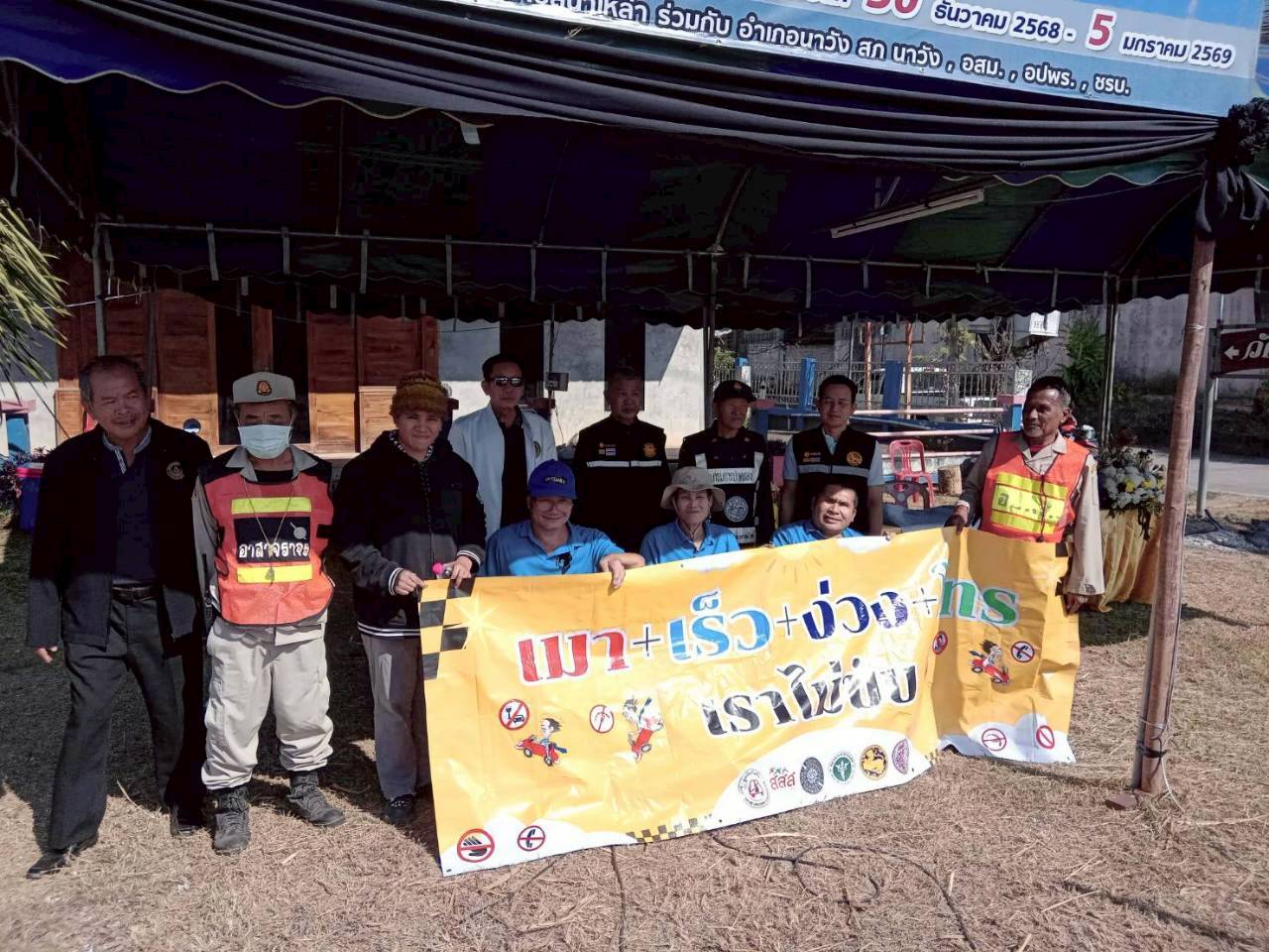 เมื่อวันที่ 3 มกราคม พ.ศ.2569 เครือข่ายเหยื่อเมาแล้วขับ จังหวัดหนองบัวลำภู นำสมาชิก เหยื่อฯ จิตอาสาร่วมกิจกรรมรณรงค์ในการใช้รถ ใช้ถนน ขับขี่ปลอดภัย ใส่หมวกกันน็อค เมาไม่ขับ ไม่ขับเร็ว ในช่วง 7 วันอันตราย ส่งท้ายปีเก่า ต้อนรับปีใหม่ กับเจ้าหน้าที่ตำรวจจราจร สภ.นาวัง รพสต. ชรบ.จิตอาสา ที่มาให้บริการประชาชน หน้าจุดบริการประชาชนโรงเรียนาวังศึกษาวิช อ.นาวัง เวลา 06.00 – 09.00 น. และในช่วง เวลา 09.00 – 12.00 น. ได้เดินทางร่วมกิจกรรมกับเจ้าหน้าที่ รณรงค์ฯ บริเวณจุดบริการประชาชน หน้าโรงเรียนบ้านเทพคีรี ต.เทพคีรี อ.นาวัง ที่ผ่านมา