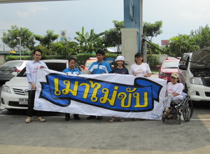 สมาชิกเครือข่ายเหยื่อเมาแล้วขับ กรุงเทพมหานคร รณรงค์เมาไม่ขับ แจกสื่อ สติ๊กเกอร์ แผ่นพับ ให้ประชาชน บริเวณ สถานีบริการปั้มน้ำมัน ปตท. เมื่อวันที่ 21 สิงหาคม พ.ศ.2559 ที่ผ่านมา