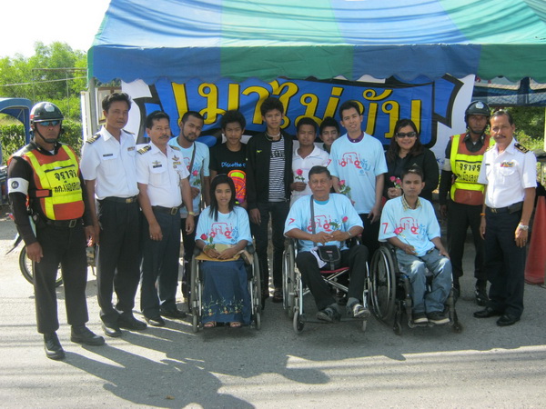 สมาชิกศูนย์ประสานงานเครือข่ายเหยื่อเมาแล้วขับ ในมูลนิธิเมาไม่ขับ จ.สงขลา รณรงค์ เมาไม่ขับ สงกรานต์ปลอดภัย ตายเป็นศูนย์ แจกสื่อ สติ๊กเกอร์ แผ่นพับ ให้ประชาชนผู้ใช้รถใช้ถนน ณ จุดตรวจห้าแยกเกาะยอ อ.หาดใหญ่ เมื่อวันที่ 11-13 เมษายน 2555 ที่ผ่านมา