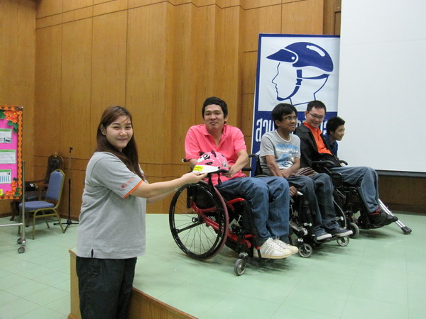 สมาชิกเครือข่ายเหยื่อเมาแล้วขับ ในมูลนิธิเมาไม่ขับ จ.ชลบุรี บรรยายถ่ายทอดประสบการณ์ โครงการเพื่อสังคมไทยร่วมใจกันป้องกันอุบัติภัยจากยานยนต์ มหาวิทยาลัยบูรพา เมื่อวันที่ 1 กันยายน 2555 ที่ผ่านมา