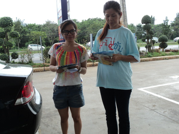 สมาชิกเครือข่ายเหยื่อเมาแล้วขับ ในมูลนิธิเมาไม่ขับ จ.สุราษฎร์ธานี รณรงค์เมาไม่ขับ ปีใหม่ตายเป็นศูนย์ แจกสื่อสติ๊กเกอร์ แผ่นพับ ให้ประชาชน ณ ปั้มน้ำมัน ปตท. เมื่อวันที่ 1 มกราคม พ.ศ.2556 ที่ผ่านมา
