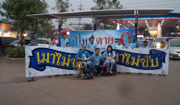 สมาชิกเครือข่ายเหยื่อเมาแล้วขับ กรุงเทพมหานคร รณรงค์เมาไม่ขับ ปีใหม่ตายเป็นศูนย์ แจกสื่อ สติ๊กเกอร์ แผ่นพับ ให้ประชาชน สถานีบริการปั้มน้ำมัน ปตท. วิภาวดี เมื่อวันที่ 4 มกราคม พ.ศ.2557 ที่ผ่านมา