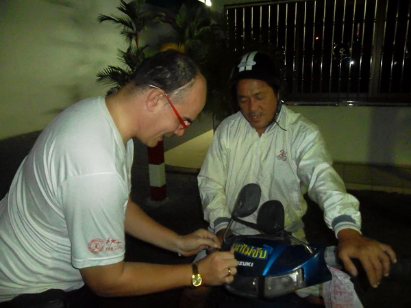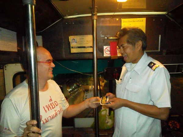 คริสโตเฟอร์ แจ๊ค เบญจกุล รณรงค์เมาไม่ขับ แจกสื่อ สติ๊กเกอร์แผ่นพับ ให้ประชาชน ท่าเรือพระสมุทรเจดีย์ เมื่อวันที่ 26 ธันวาคม พ.ศ.2556 ที่ผ่านมา