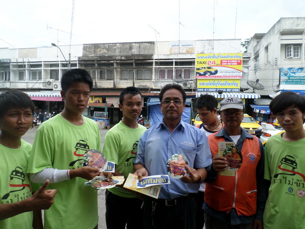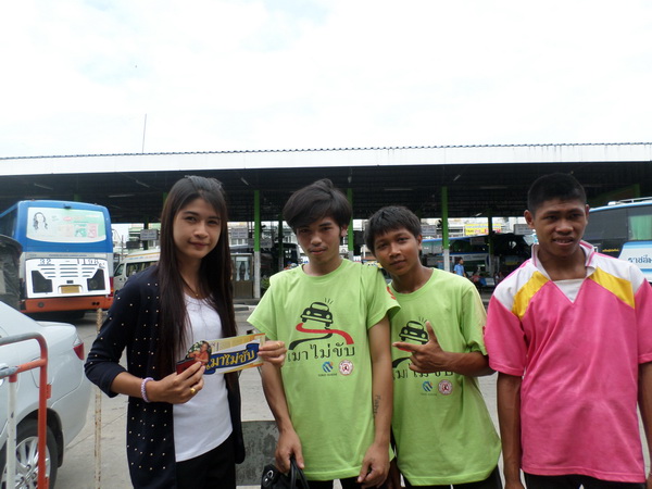 สมาชิกเครือข่ายเหยื่อเมาแล้วขับ จ.บุรีรัมย์ รณรงค์เมาไม่ขับ แจกสื่อ สติ๊กเกอร์แผ่นพับ ให้ประชาชน สถานีขนส่ง เมื่อวันที่ 11 กรกฎาคม พ.ศ.2557 ที่ผ่านมา