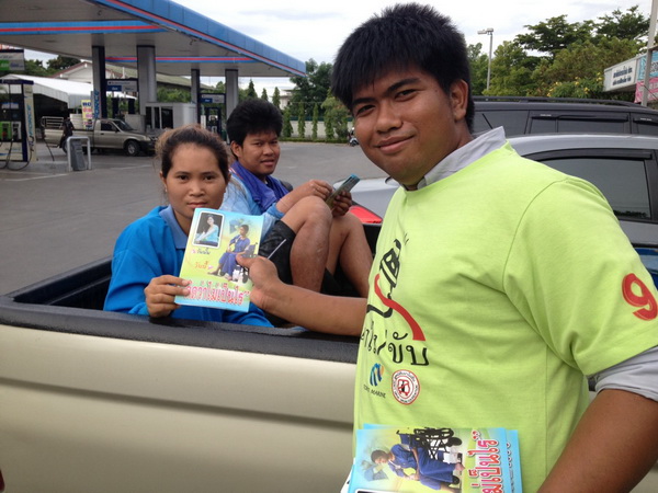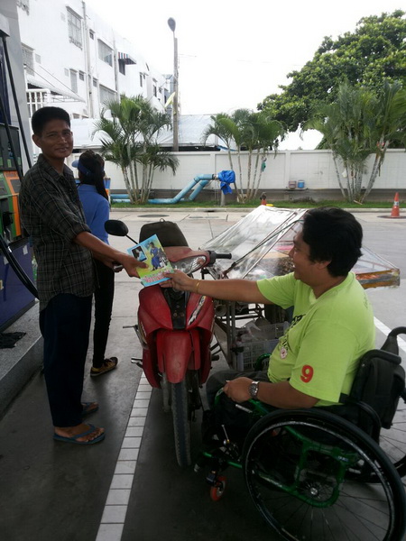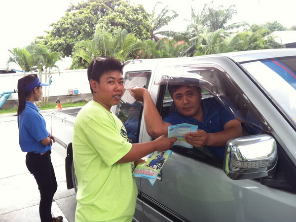 สมาชิกเครือข่ายเหยื่อเมาแล้วขับ กรุงเทพมหานคร รณรงค์เมาไม่ขับ แจกสื่อ สติ๊กเกอร์แผ่นพับ ให้ประชาชน สถานีบริการปั้มน้ำมัน ปตท. เมื่อวันที่ 19 กรกฎาคม พ.ศ.2557 ที่ผ่านมา