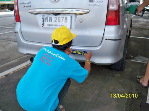 สมาชิกศูนย์ประสานงานเครือข่ายเหยื่อเมาแล้วขับ ในมูลนิธิเมาไม่ขับ จ.จันทบุรี รณรงค์ "เมาไม่ขับ" เทศกาลสงกรานต์ 2553 แจกสื่อ สติ๊กเกอร์ แผ่นพับ ให้กับประชาชน ณ ปั้มน้ำมัน ปตท. ในวันที่ 13 เมษายน 2553 ที่ผ่านมา