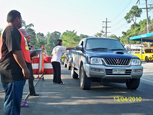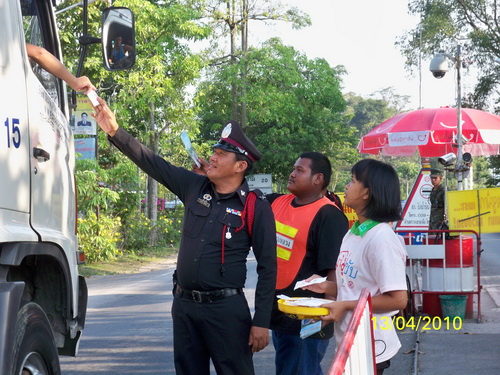 สมาชิกศูนย์ประสานงานเครือข่ายเหยื่อเมาแล้วขับ ในมูลนิธิเมาไม่ขับ จ.จันทบุรี รณรงค์ "เมาไม่ขับ" เทศกาลสงกรานต์ 2553 แจกสื่อ สติ๊กเกอร์ แผ่นพับ ให้กับประชาชน ณ จุดตรวจเขาเกลือ ในวันที่ 13 เมษายน 2553 ที่ผ่านมา