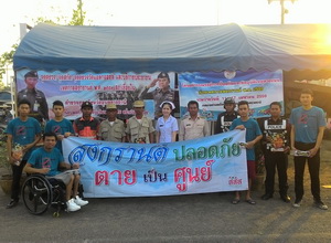 สมาชิกเครือข่ายเหยื่อเมาแล้วขับ จังหวัดนนทบุรี รณรงค์เมาไม่ขับ ปีใหม่ปลอดภัย ตายเป็นศูนย์ ร่วมแจกสื่อ สติ๊กเกอร์ แผ่นพับ ให้ประชาชน บริเวณ จุดตรวจหน้าสถานีดาวเทียมไทยคม เมื่อวันที่ 30 ธันวาคม พ.ศ.2558 ที่ผ่านมา