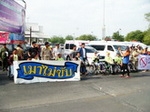 สมาชิกเครือข่ายเหยื่อเมาแล้วขับ จังหวัดมหาสารคาม รณรงค์เมาไม่ขับ สงกรานต์ปลอดภัย ตายเป็นศูนย์ แจกสื่อ สติ๊กเกอร์แผ่นพับ ให้ประชาชน บริเวณจุดตรวจแก่งเลิงจาน เมื่อวันที่ 9 เมษายน พ.ศ.2558 ที่ผ่านมา