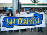 สมาชิกศูนย์ประสานงานเครือข่ายเหยื่อเมาแล้วขับ ในมูลนิธิเมาไม่ขับ จ.ภูเก็ต รณรงค์ "เมาไม่ขับ ปีใหม่ตายเป็นศูนย์" โดยแจกสื่อ สติ๊กเกอร์ แผ่นพับ ผ้าเย็น ให้กับประชาชนและนักท่องเที่ยว ณ จุดตรวจ สภ.อ.ถลาง เมื่อวันที่ 31 ธันวาคม 2554 ที่ผ่านมา