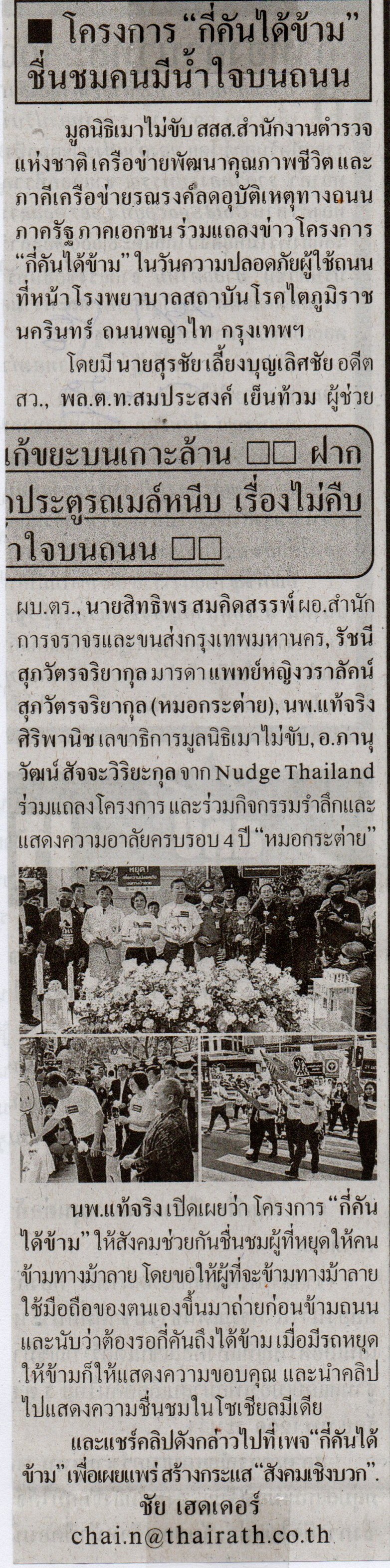 โครงการ "กี่คันได้ข้าม" ชื่นชมคนมีน้ำใจบนถนน (ไทยรัฐ น8)