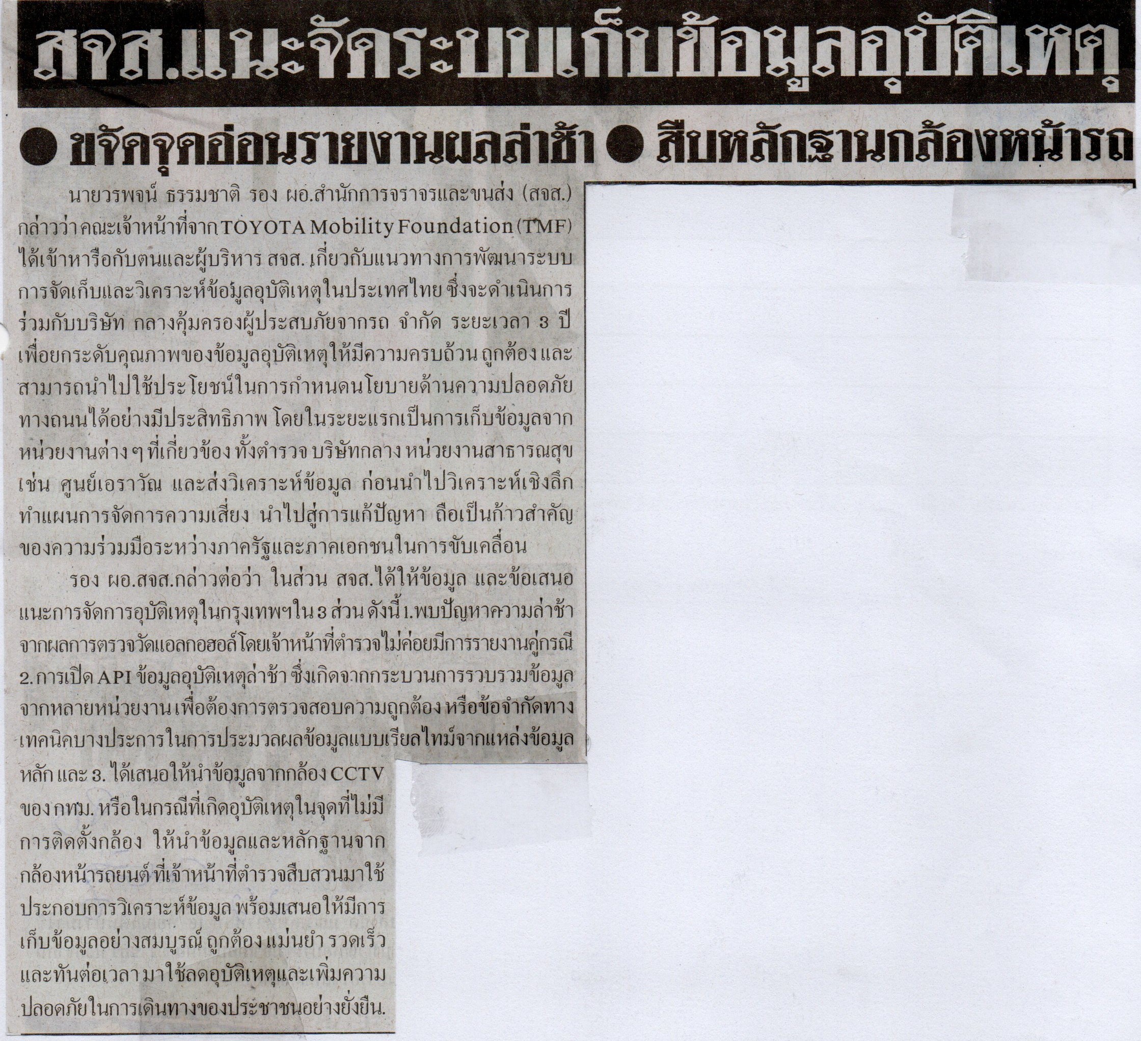 สจส.แนะจัดระบบเก็บข้อมูลอุบัติเหตุ (ไทยรัฐ น15)