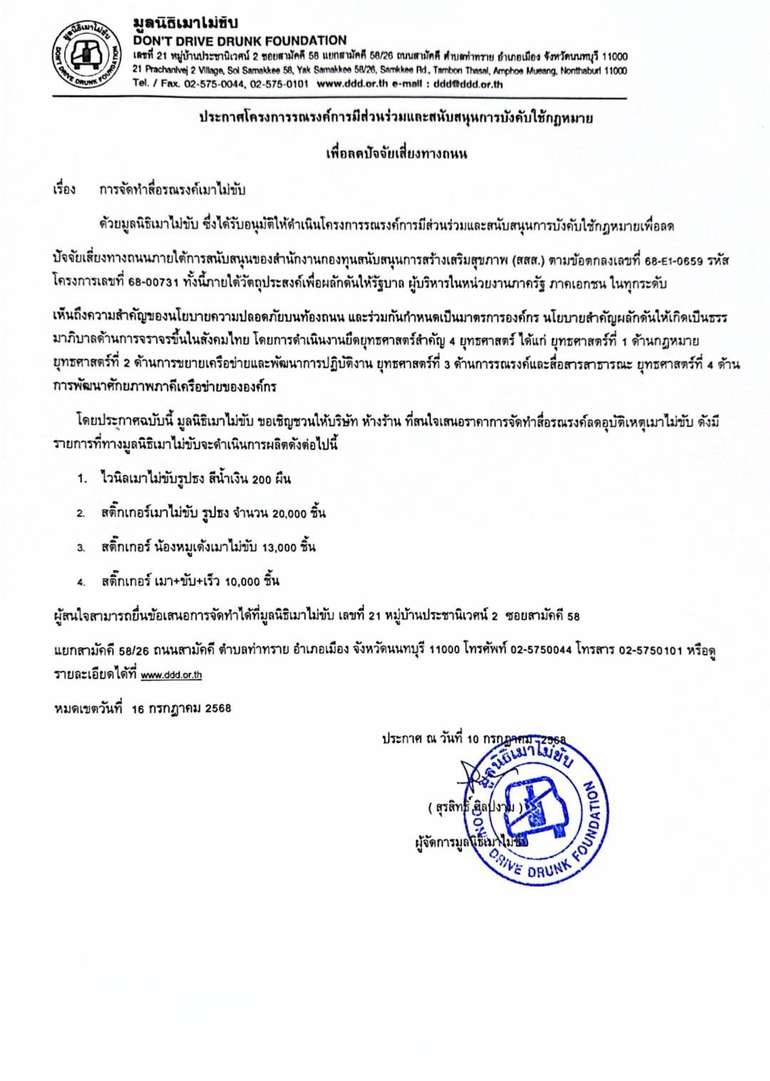 ประกาศจัดทำสื่อรณรงค์เมาไม่ขับ (10-7-68)