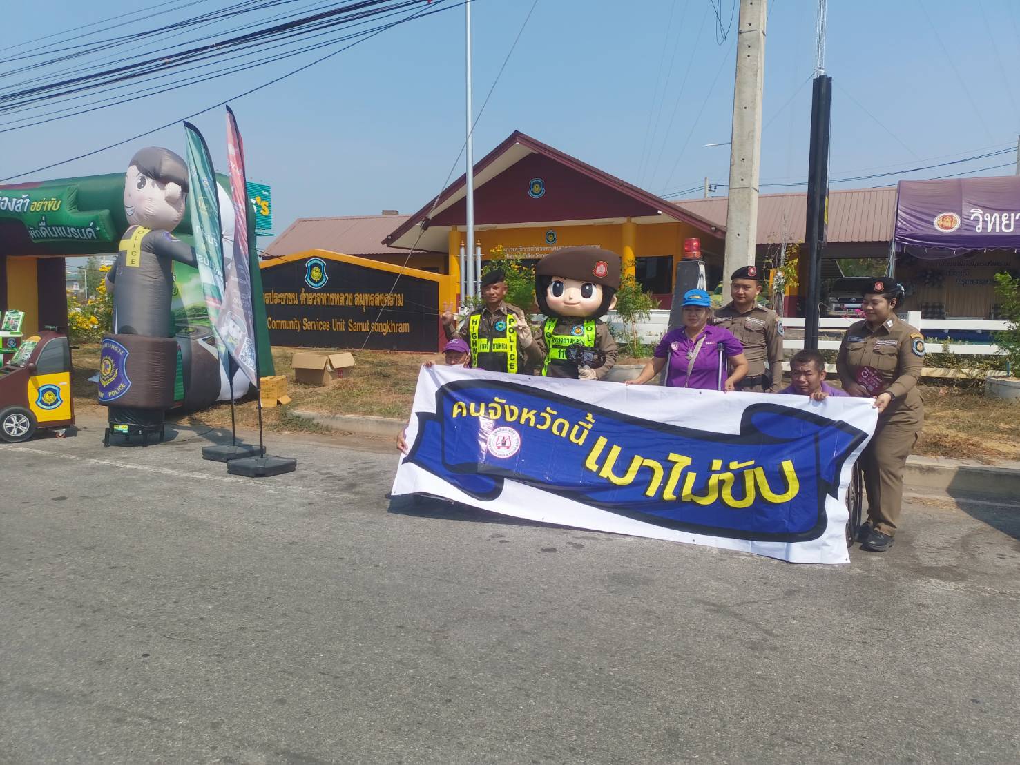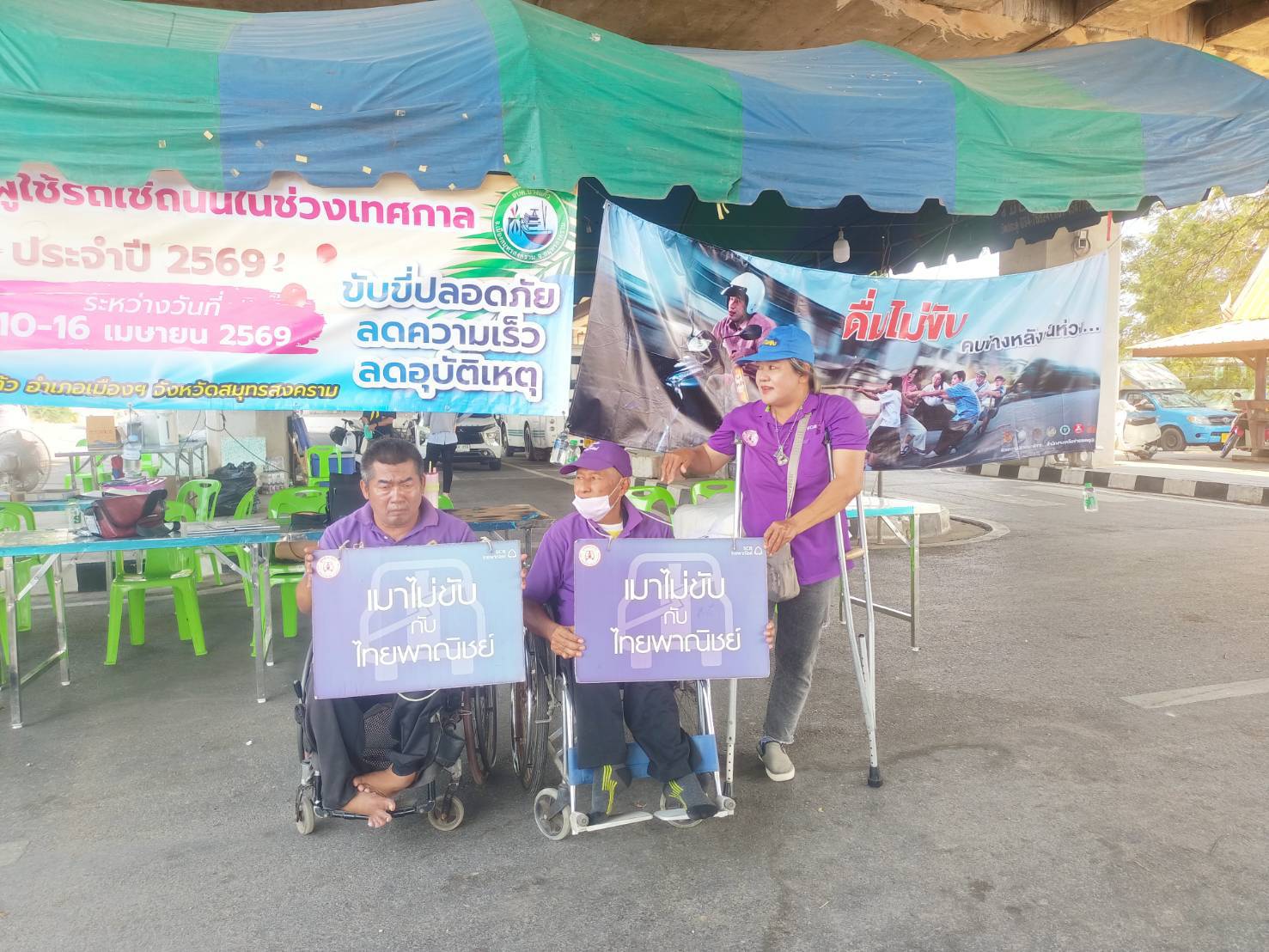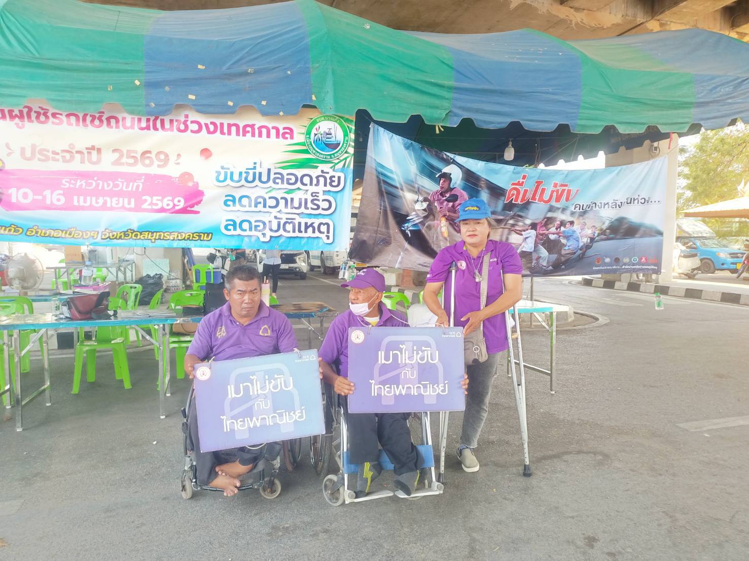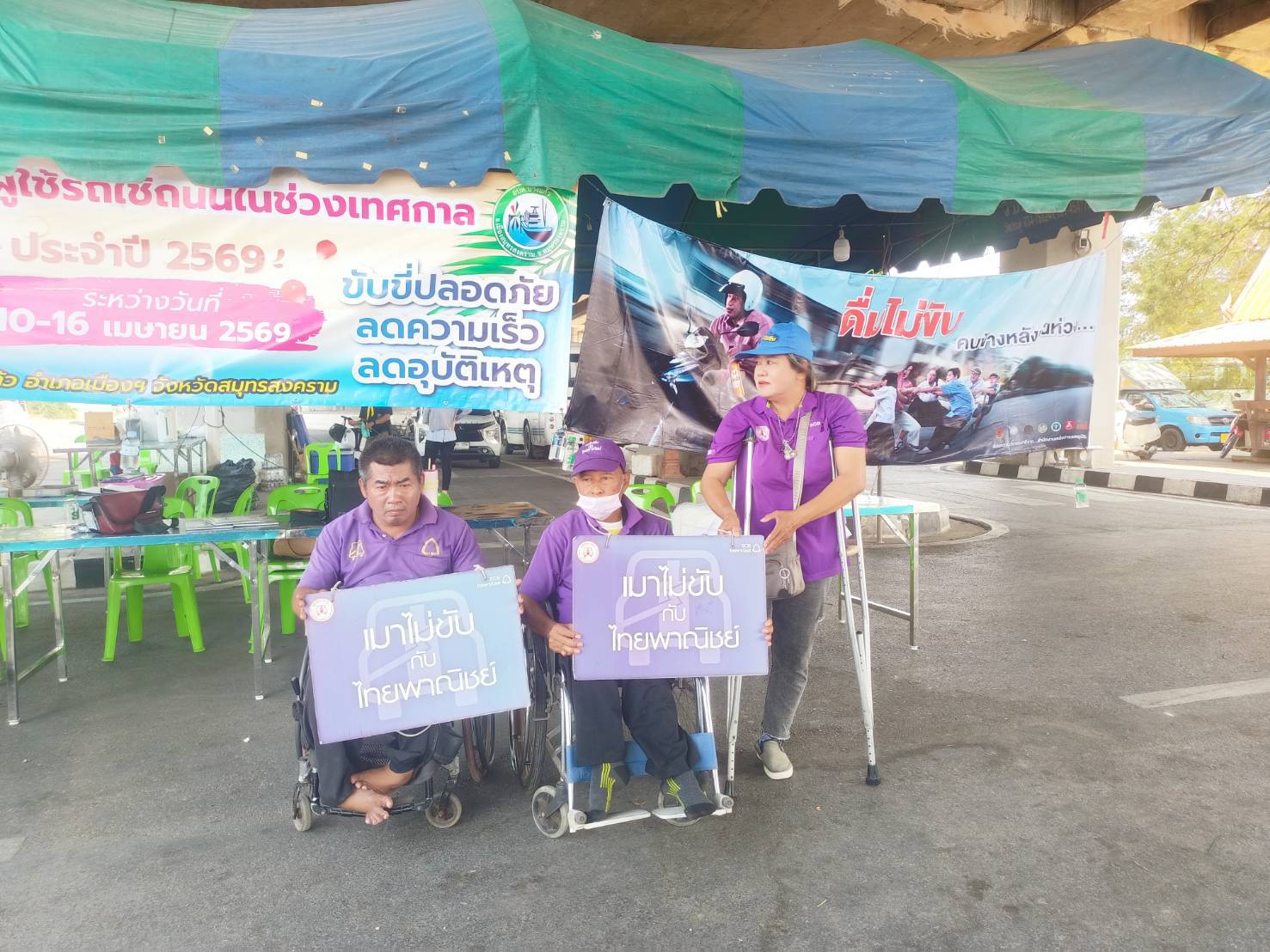 เมื่อวันที่ 16 เมษายน พ.ศ.2569 1. นายสุริยัน สังข์ศิริ 2. นายมงคล จันทร์ขำ 3.นางสมหมาย วังอาสา เมาไม่ขับกับไทยพาณิชย์ จ.สมุทรสงคราม และสมาชิกเครือข่ายเหยื่อเมาแล้วขับ รณรงค์ประชาสัมพันธ์ส่งเสริมความปลอดภัยบนท้องถนน และร่วมตั้งด่านกับเจ้าหน้าที่ผู้ใหญ่บ้าน ฝ่าย ปกครอง อปพร. อสม. และหน่วยงาน 7 วันอันตราย เทศกาลสงกรานต์ 2569 อยู่ที่ จุดบริการประชาชน ถนนบางจะเกร็ง เวลา 09.00-16.00 น. ที่ผ่านมา
