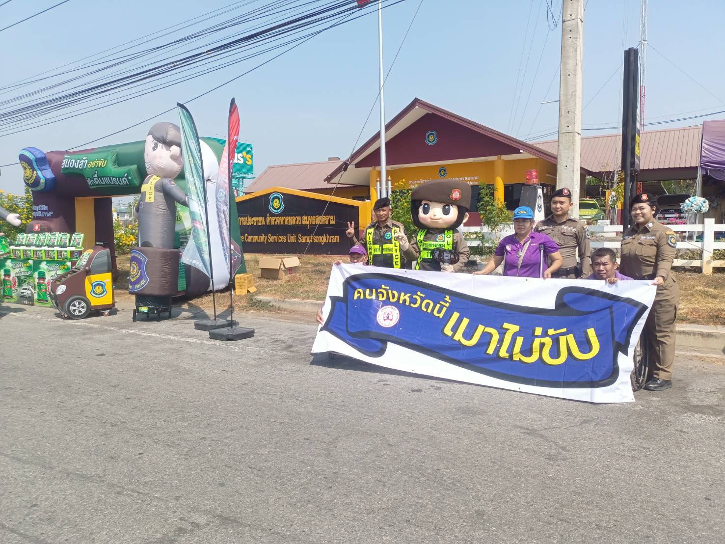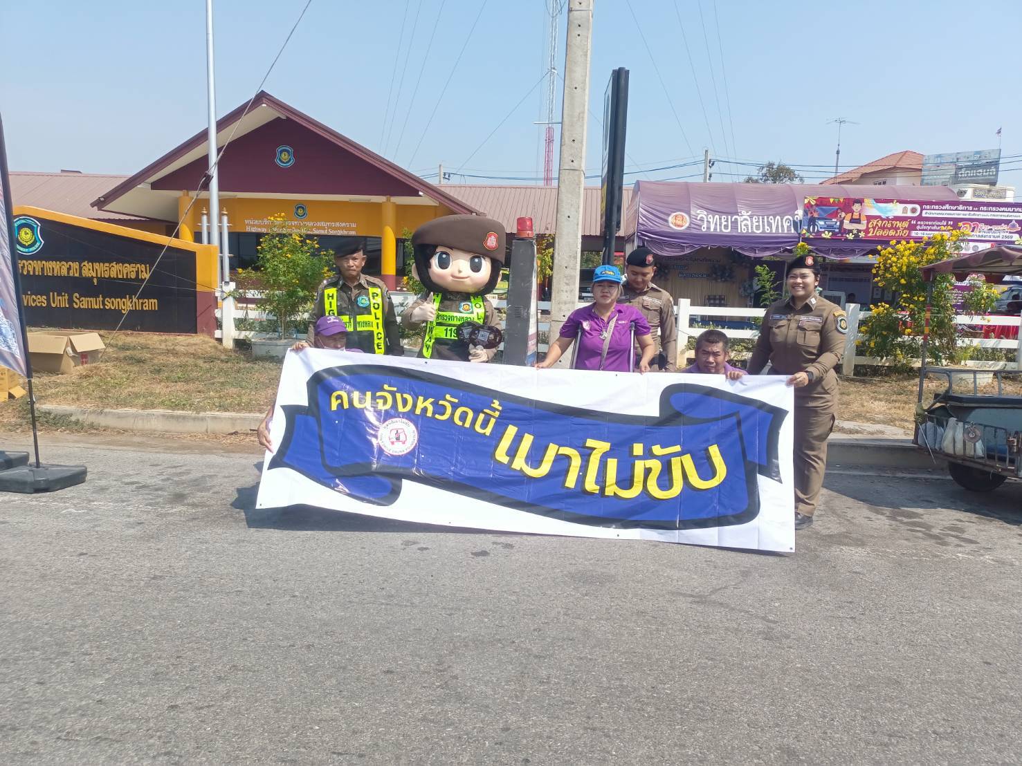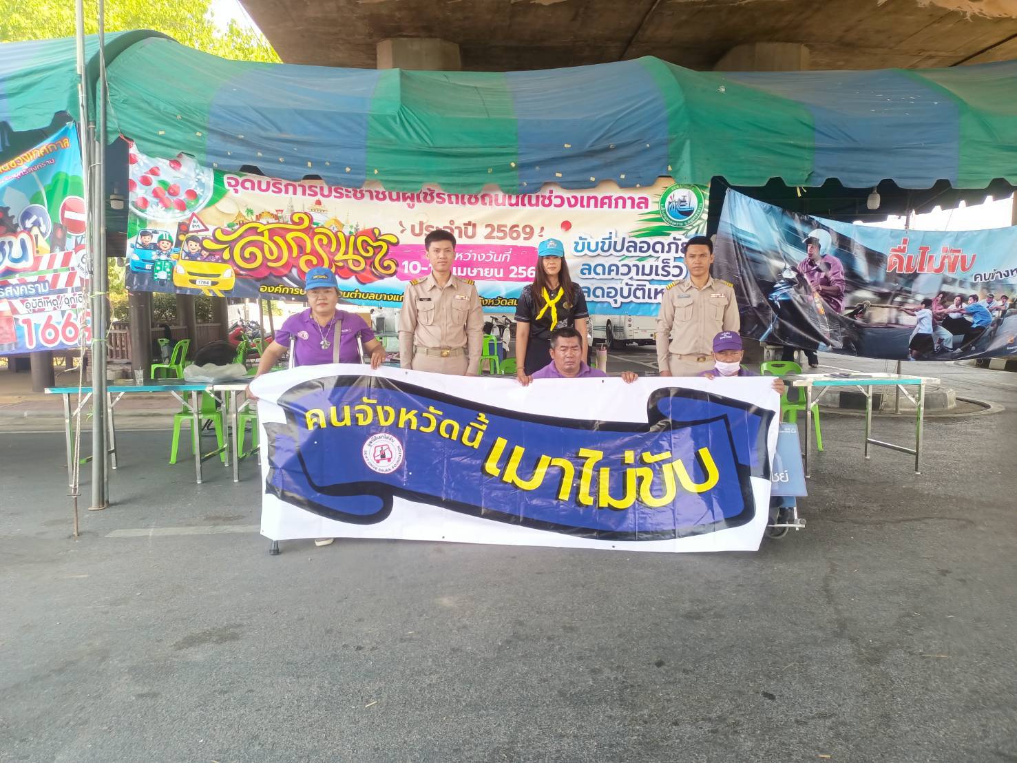 เมื่อวันที่ 16 เมษายน พ.ศ.2569 1. นายสุริยัน สังข์ศิริ 2. นายมงคล จันทร์ขำ 3.นางสมหมาย วังอาสา เมาไม่ขับกับไทยพาณิชย์ จ.สมุทรสงคราม และสมาชิกเครือข่ายเหยื่อเมาแล้วขับ รณรงค์ประชาสัมพันธ์ส่งเสริมความปลอดภัยบนท้องถนน และร่วมตั้งด่านกับเจ้าหน้าที่ผู้ใหญ่บ้าน ฝ่าย ปกครอง อปพร. อสม. และหน่วยงาน 7 วันอันตราย เทศกาลสงกรานต์ 2569 อยู่ที่ จุดบริการประชาชน ถนนบางจะเกร็ง เวลา 09.00-16.00 น. ที่ผ่านมา