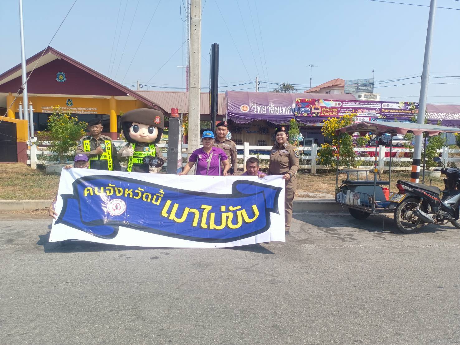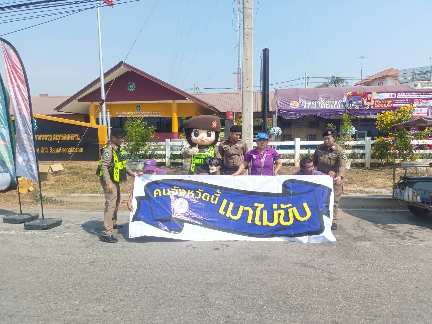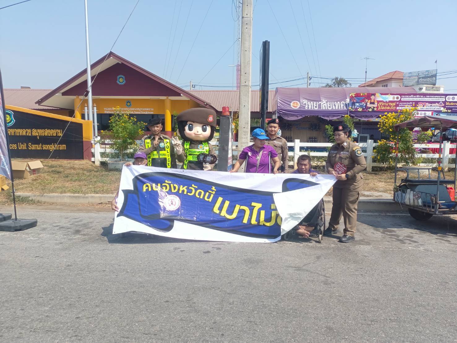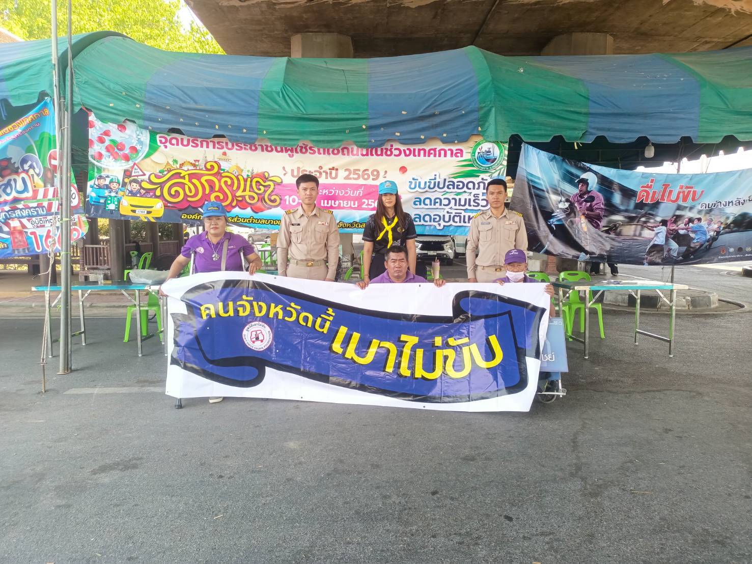 เมื่อวันที่ 16 เมษายน พ.ศ.2569 1. นายสุริยัน สังข์ศิริ 2. นายมงคล จันทร์ขำ 3.นางสมหมาย วังอาสา เมาไม่ขับกับไทยพาณิชย์ จ.สมุทรสงคราม และสมาชิกเครือข่ายเหยื่อเมาแล้วขับ รณรงค์ประชาสัมพันธ์ส่งเสริมความปลอดภัยบนท้องถนน และร่วมตั้งด่านกับเจ้าหน้าที่ผู้ใหญ่บ้าน ฝ่าย ปกครอง อปพร. อสม. และหน่วยงาน 7 วันอันตราย เทศกาลสงกรานต์ 2569 อยู่ที่ จุดบริการประชาชน ถนนบางจะเกร็ง เวลา 09.00-16.00 น. ที่ผ่านมา