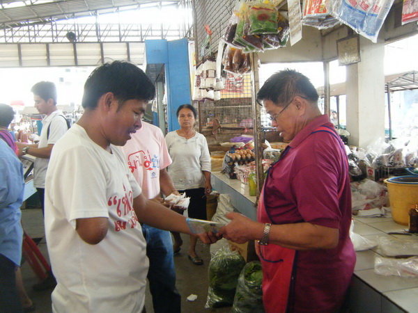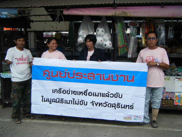 สมาชิกศูนย์ประสานงานเครือข่ายเหยื่อเมาแล้วขับ ในมูลนิธิเมาไม่ขับ จ.สุรินทร์ รณรงค์ "เมาไม่ขับ" แจกสื่อสติ๊กเกอร์ แผ่นพับ ให้ประชาชน ผู้ใช้รถใช้ถนน ณ ตลาดศีขรภูมิ เมื่อวันที่ 27-28 กุมภาพันธ์ 2555 ที่ผ่านมา