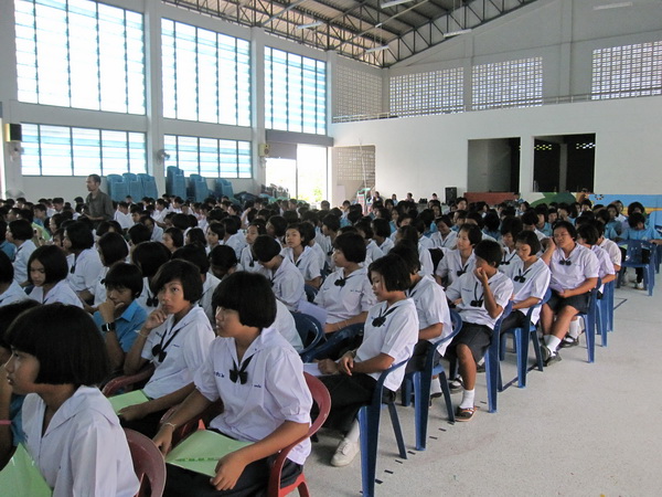 สมาชิกเครือข่ายเหยื่อเมาแล้วขับ ในมูลนิธิเมาไม่ขับ จ.ชลบุรี บรรยายถ่ายทอดประสบการณ์ โครงการเพื่อสังคมไทยร่วมใจกันป้องกันอุบัติภัยจากยานยนต์ โรงเรียนชุมชนวัดหนองค้อ เมื่อวันที่ 31 สิงหาคม 2555 ที่ผ่านมา