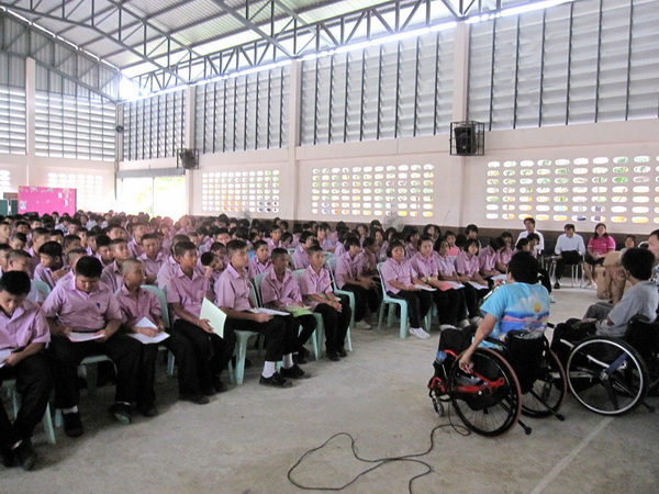 สมาชิกเครือข่ายเหยื่อเมาแล้วขับ ในมูลนิธิเมาไม่ขับ จ.ชลบุรี บรรยายถ่ายทอดประสบการณ์ โครงการเพื่อสังคมไทยร่วมใจกันป้องกันอุบัติภัยจากยานยนต์ โรงเรียนบ้านบ่อวิน เมื่อวันที่ 7 กันยายน 2555 ที่ผ่านมา