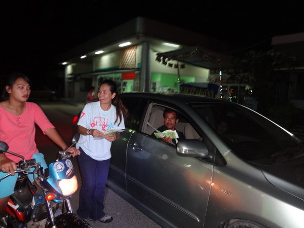 สมาชิกแกนนำ เครือข่ายเหยื่อเมาแล้วขับ กรุงเทพมหานคร รณรงค์เมาไม่ขับ แจกสื่อสติ๊กเกอร์แผ่นพับ ให้ประชาชน ปั้มน้ำมันบางจาก เมื่อวันที่ 29 ตุลาคม 2555 ที่ผ่านมา
