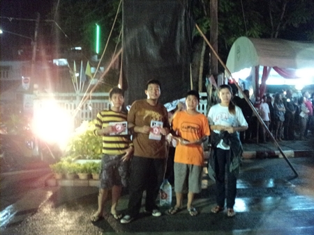 สมาชิกศูนย์ประสานงานเครือข่ายเหยื่อเมาแล้วขับ ในมูลนิธิเมาไม่ขับ จ.สุราษฎร์ธานี รณรงค์เมาไม่ขับ แจกสื่อสติ๊กเกอร์ งาน”ชักพระ – แข่งเรือ เมื่อวันที่ 30-31 ตุลาคม 2555 ที่ผ่านมา