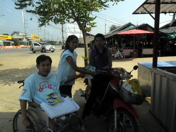 สมาชิกเครือข่ายเหยื่อเมาแล้วขับ ในมูลนิธิเมาไม่ขับ จ.น่าน รณรงค์เมาไม่ขับ แจกสื่อ สติ๊กเกอร์ แผ่นพับ ให้ประชาชน ตลาดบ้านป่าคา 15-16 ตุลาคม พ.ศ.2555 ที่ผ่านมา