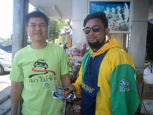 สมาชิกเครือข่ายเหยื่อเมาแล้วขับ จังหวัดแพร่ รณรงค์เมาไม่ขับ ปีใหม่ตายเป็นศูนย์ ร่วมแจกสื่อ สติ๊กเกอร์ แผ่นพับ ให้ประชาชน สถานีบริการปั้มน้ำมัน ปตท. เมื่อวันที่ 2 มกราคม พ.ศ.2558 ที่ผ่านมา