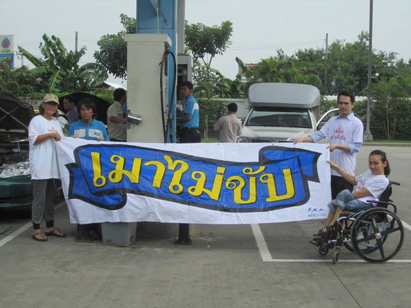 สมาชิกเครือข่ายเหยื่อเมาแล้วขับ กรุงเทพมหานคร รณรงค์เมาไม่ขับ ร่วมแจกสื่อ สติ๊กเกอร์ แผ่นพับ ให้ประชาชน บริเวณ ปั้มน้ำมัน ปตท. เมื่อวันที 18 กันยายน พ.ศ.2558 ที่ผ่านมา