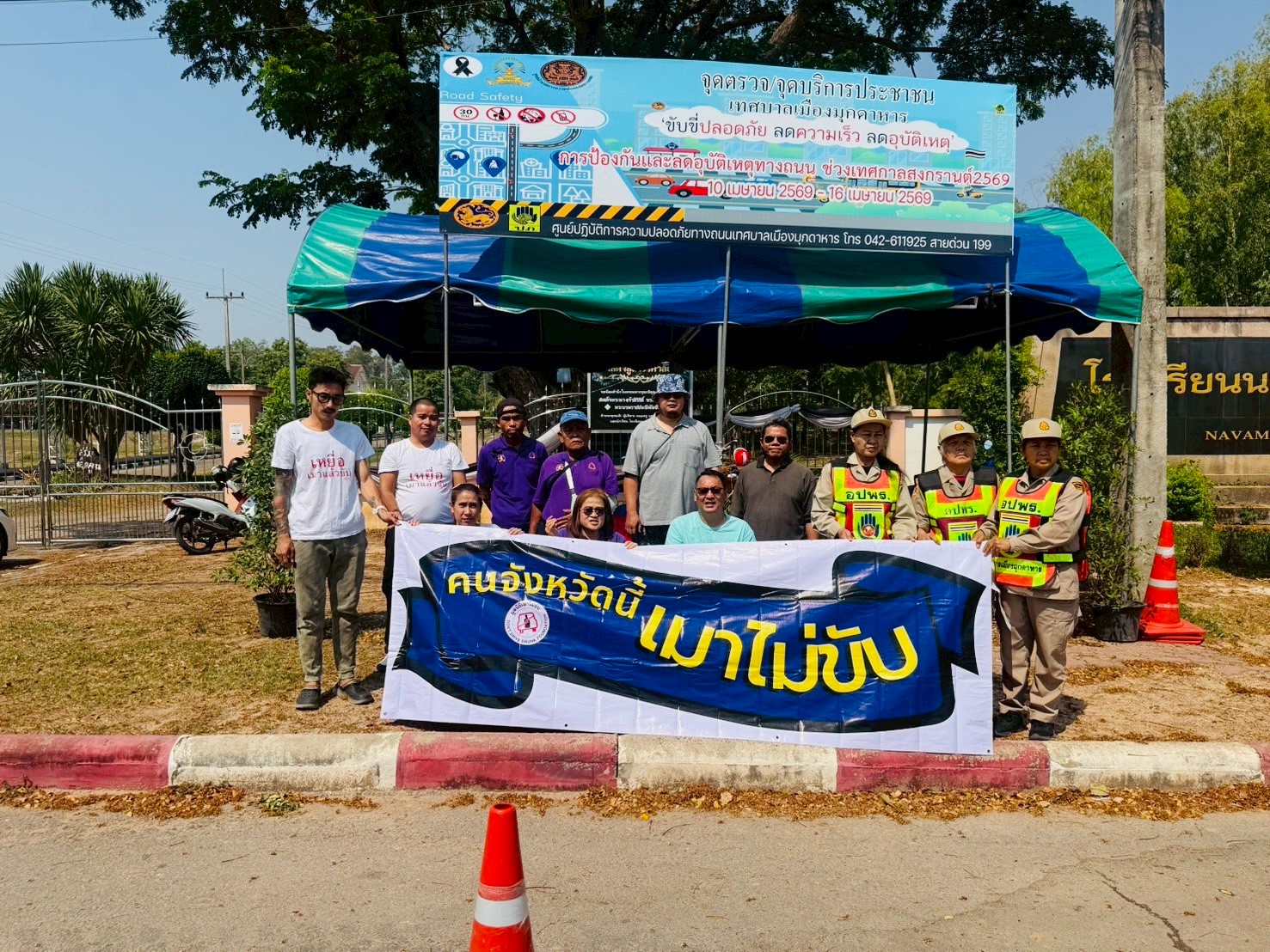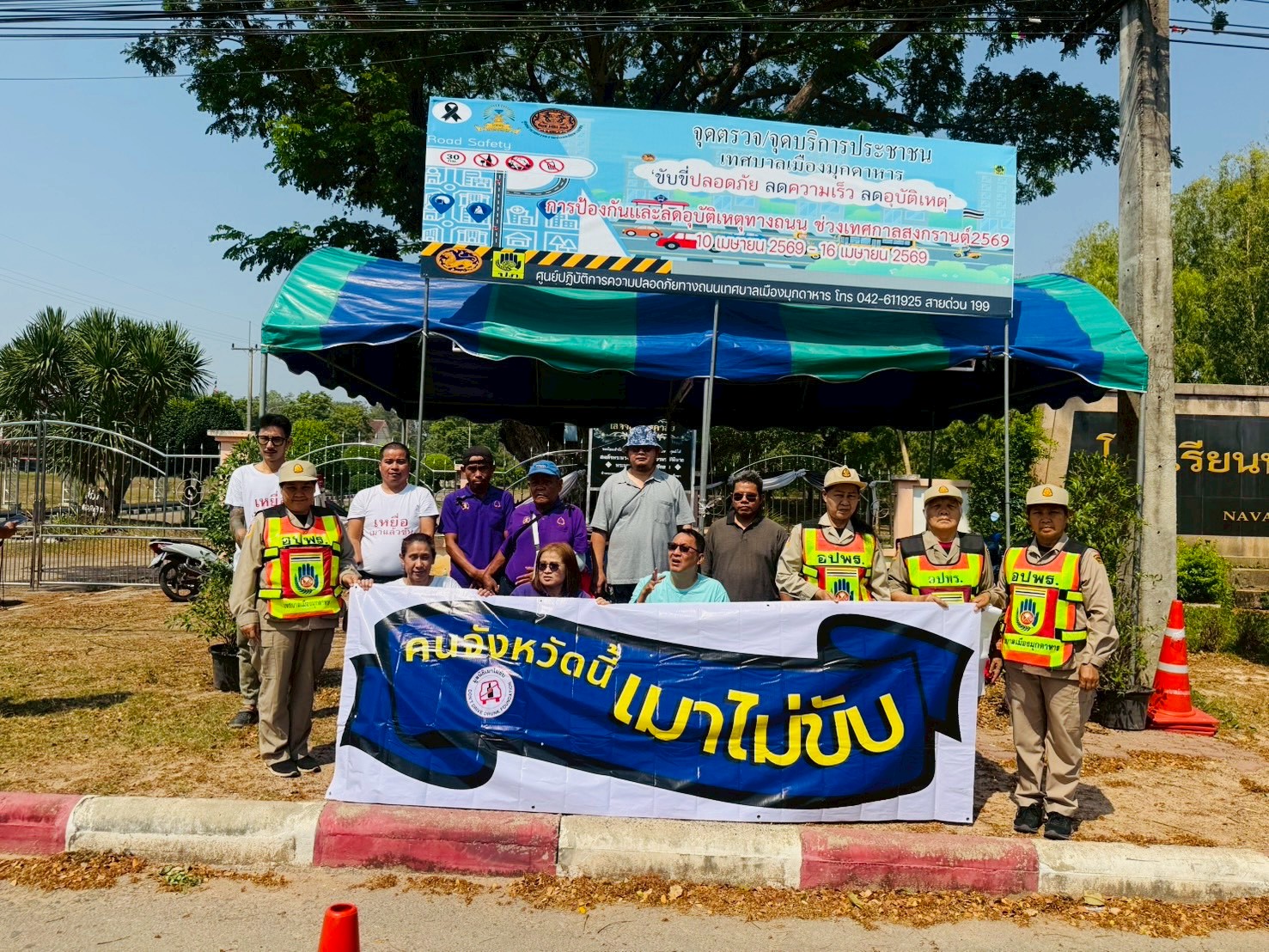 เมื่อวันที่ 12 เมษายน พ.ศ.2569 เครือข่ายเหยื่อเมาแล้วขับ จังหวัดมุกดาหาร ร่วมกับเจ้าหน้าที่ช่วง 7 วันอันตราย เทศกาลสงกรานต์ 2569 รณรงค์ประชาสัมพันธ์ ให้เกิดความปลอดภัยเพื่อลดอุบัติเหตุบนท้องถนน และสร้างจิตสำนึกให้ผู้ที่สัญจรที่ผ่านไป-มา ใช้รถอย่างระมัดระวัง เมาไม่ขับ ง่วงไม่ขับ โทรไม่ขับ ไม่ขับรถย้อนศร ไม่ฝ่าไฟแดง ลดความเร็ว ลดความเสี่ยง เคารพ กฎหมายจราจร ณ. จุดตรวจหน้าโรงเรียนนวมินทร์ จังหวัดมุกดาหาร เวลา 08.00 - 12.00 น
