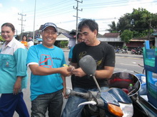 สมาชิกเครือข่ายเหยื่อเมาแล้วขับ จ.หนองคาย รณรงค์สงกรานต์ ปลอดภัยเมาไม่ขับ แจกสื่อ สติ๊กเกอร์ แผ่นพับ ให้ประชาชน บริเวณ สถานีบริการปั้มน้ำมัน ปตท. เมื่อวันที่ 13 เมษายน พ.ศ.2559 ที่ผ่านมา