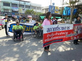 สมาชิกเครือข่ายเหยื่อเมาแล้วขับ จ.สุราษฎร์ธานี รับมอบกายอุปกรณ์ จากผู้ใจบุญ เมื่อวันที่ 9 กรกฎาคม พ.ศ.2558 ที่ผ่านมา