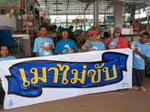 สมาชิกเครือข่ายเหยื่อเมาแล้วขับ จ.ปทุมธานี รณรงค์เมาไม่ขับ ร่วมแจกสื่อ สติ๊กเกอร์ แผ่นพับ ให้ประชาชน บริเวณ ศูนย์สอบขับรถบรรทุกขนาดใหญ่ กรมขนส่งทางบก อำเภอ ลำลูกกา จังหวัด ปทุมธานี เมื่อวันที่ 13 กุมภาพันธ์ พ.ศ.2558 ที่ผ่านมา