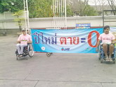 สมาชิกศูนย์ประสานงานเครือข่ายเหยื่อเมาแล้วขับ ในมูลนิธิเมาไม่ขับ จ.สุรินทร์ รณรงค์ "เมาไม่ขับ" แจกสื่อสติ๊กเกอร์ แผ่นพับ ให้ประชาชน ผู้ใช้รถใช้ถนน ณ จุดตรวจ สภ.ท่าตูม เมื่อวันที่ 9 พฤษภาคม 2555 ที่ผ่านมา