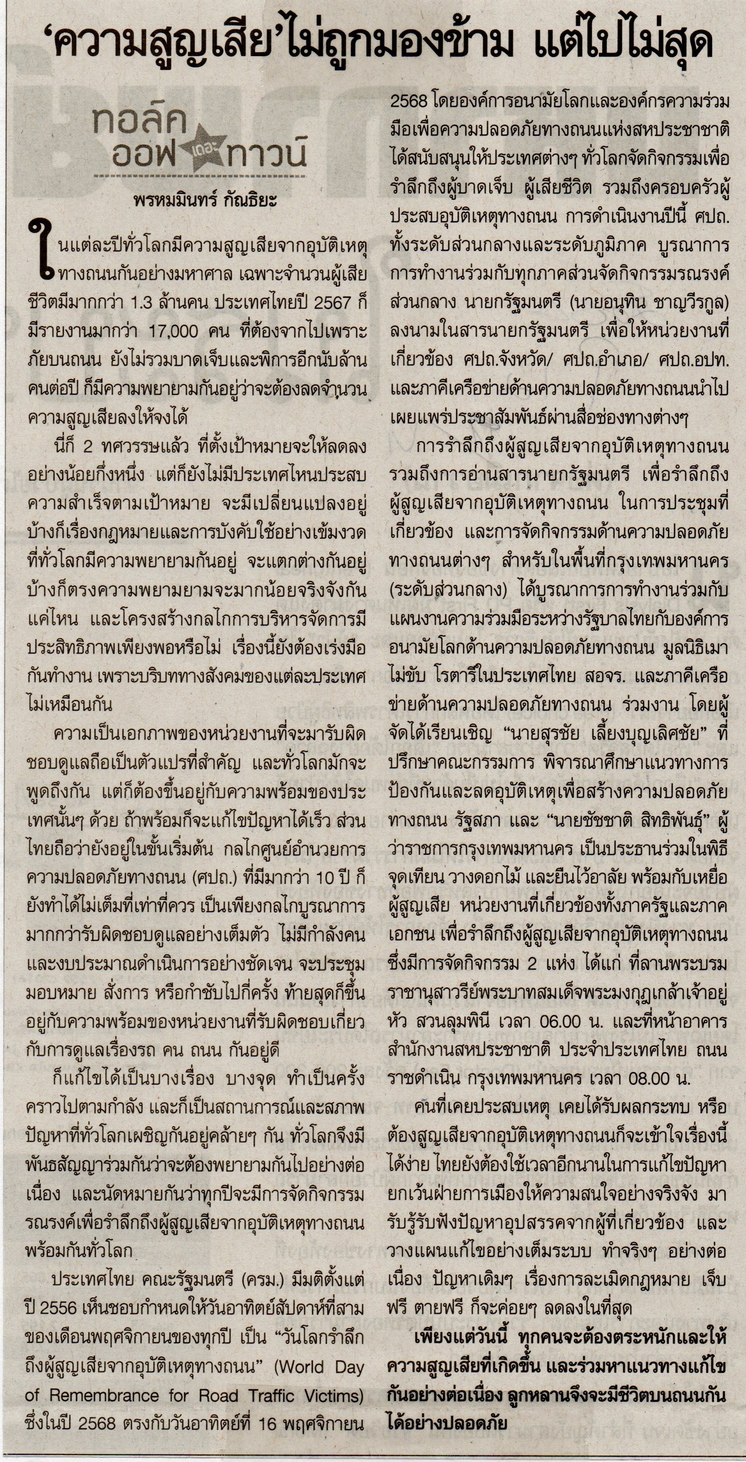 "ความสูญเสีย"ไม่ถูกมองข้ามแต่ไปไม่สุด (มติชน น12)